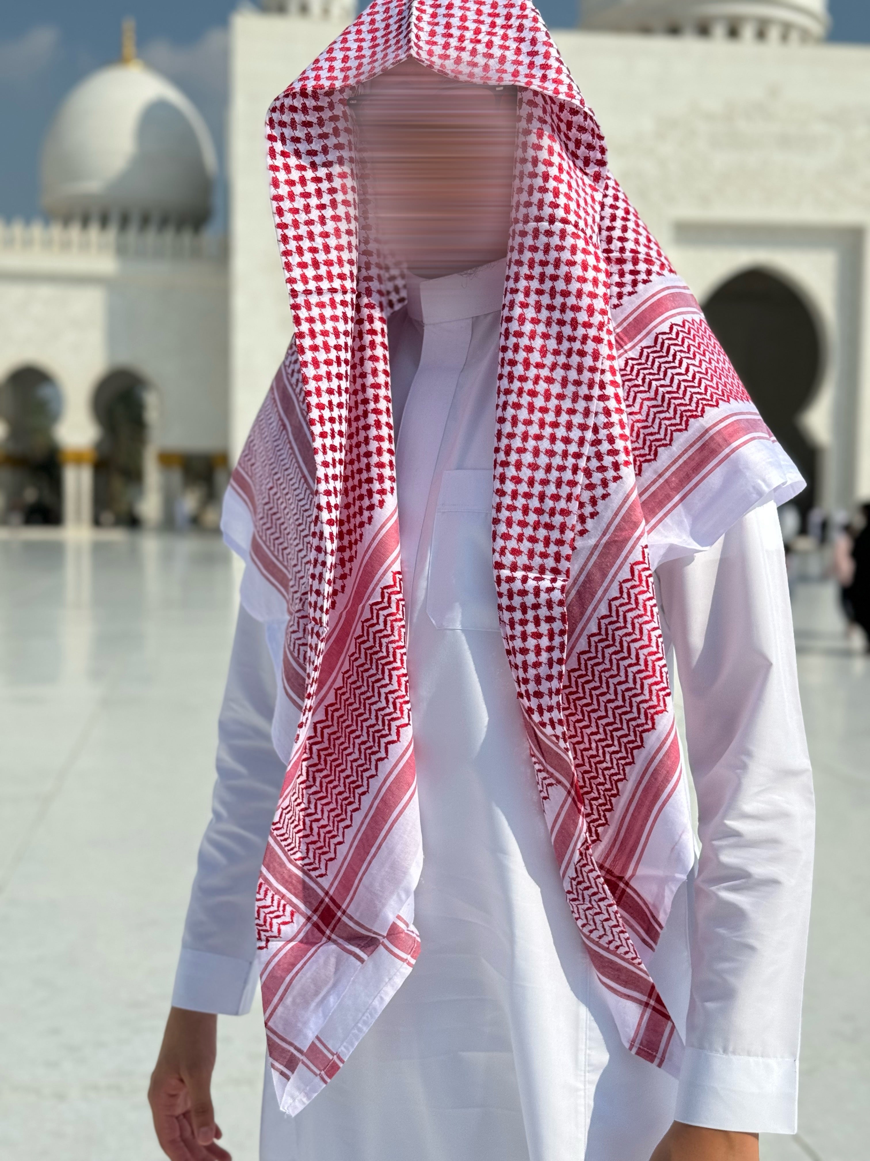 Ghutra en coton façon saoudienne. Dimension : 55X55cm.