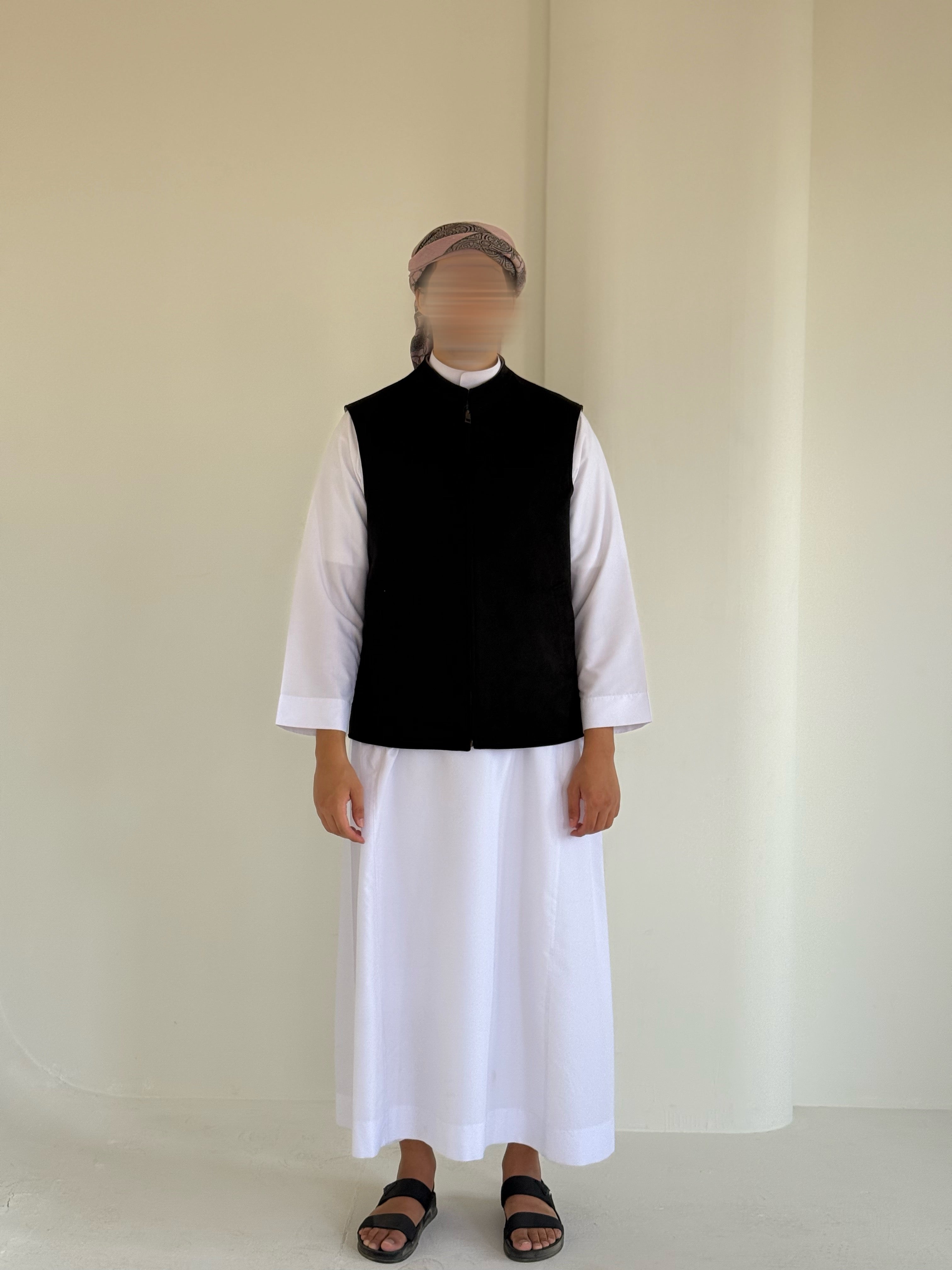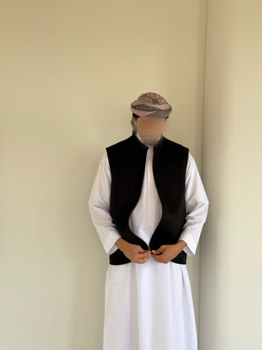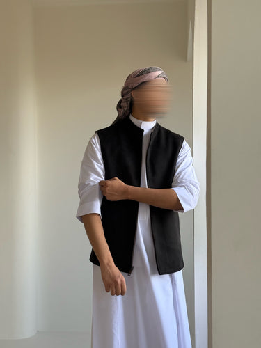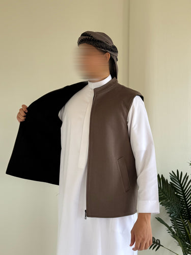 Notre veste saoudienne sans manches se porte recto verso, offrant deux styles en un seul vêtement.